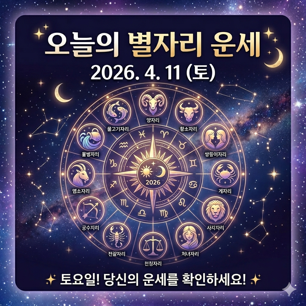 2026년 4월 11일 토요일, 당신의 운명을 바꿀 별들의 메시지는? 물병자리부터 염소자리까지, 재물운과 연애운을 극대화할 행운의 아이템과 조언을 지금 확인하세요.